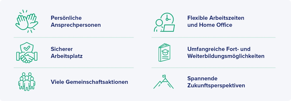 Für Fragen, Probleme und zur Unterstützung stehen dir während der gesamten Ausbildungszeit neben deinen Ausbilder*innen jederzeit deine persönlichen Ansprechpersonen im Bereich Ausbildung zur Verfügung.